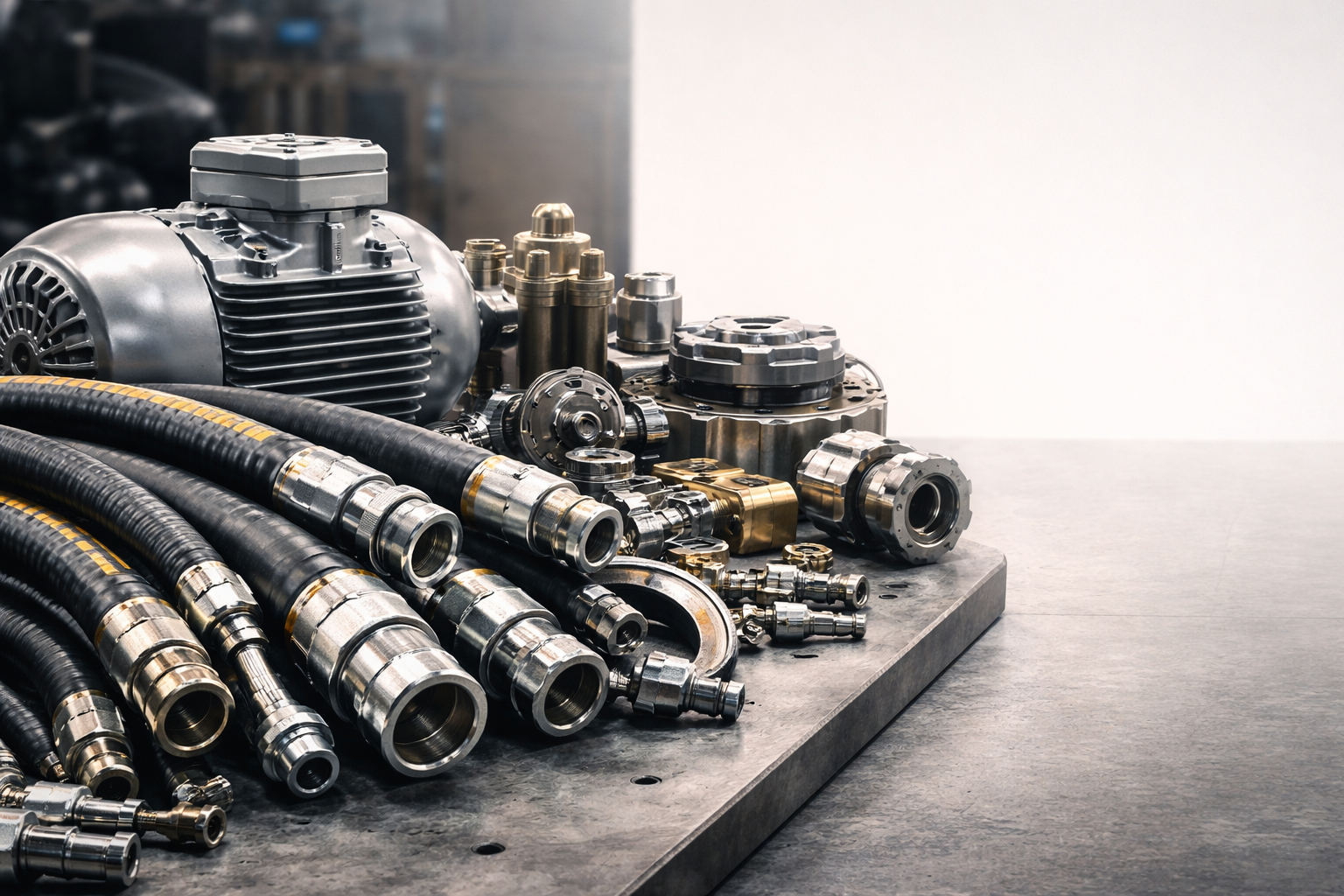 Hydraulic hoses, motor components, and critical parts designed for fast install, maximum durability, and zero downtime.